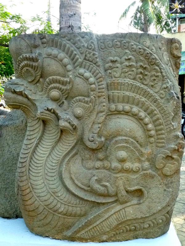 Joli tympan représentant Brahma, le Créateur (ici à 3 têtes seulement), trouvé sur le site et aujourd'hui conservé au Musée de Bình Ðịnh. Fin XIIè siècle - début XIIIè.