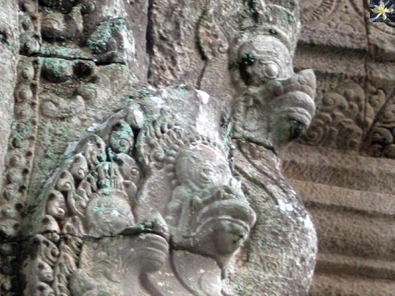 Ce qui est remarquable ici, c'est l'originalité et la richesse du décor. L'utilisation des sculptures en pierre est beaucoup plus prononcée que dans les autres tours chames. La tour centrale a un joli fronton sur la porte, par ci, par là, des restes de hauts-reliefs